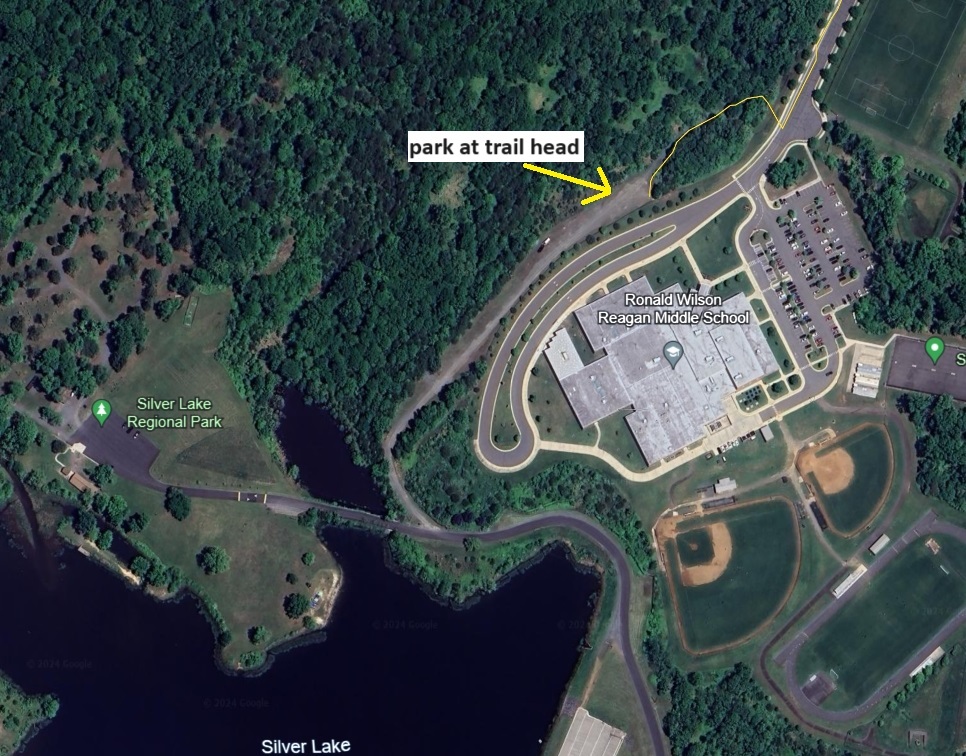 Park at the trail head in Silver Lake Park (15800 Silver Lake Rd, Haymarket, VA 20169). Or park at Reagan Middle School if that is more convenient and meet the group at the trail head.