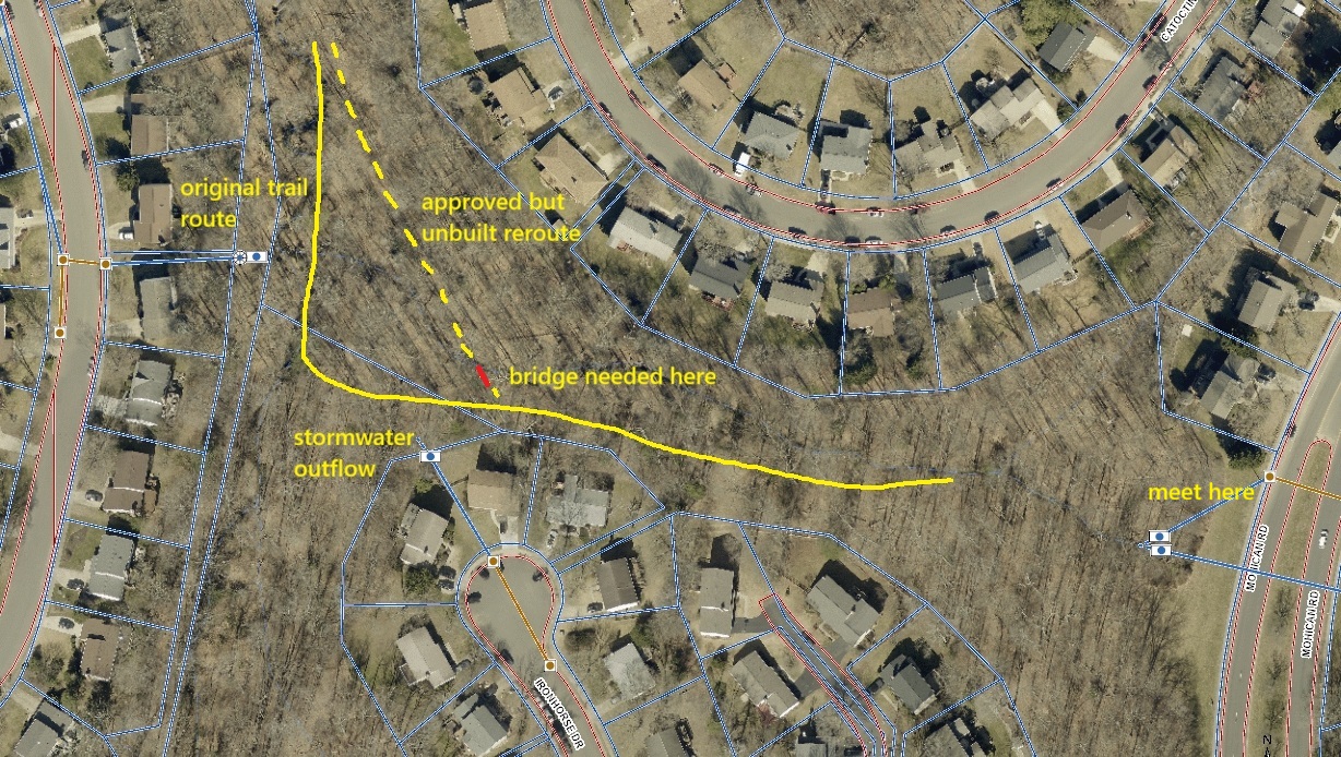 Volunteers are needed for a trail workday on Saturday, May 23 on Segment 3 of the Occoquan Greenway Trail. We’ll be working on a short trail reroute and installing a 16-ft wooden bridge over a stream channel. The purpose is to reroute the trail away from a consistently wet area onto higher ground for a better hiking and biking experience.